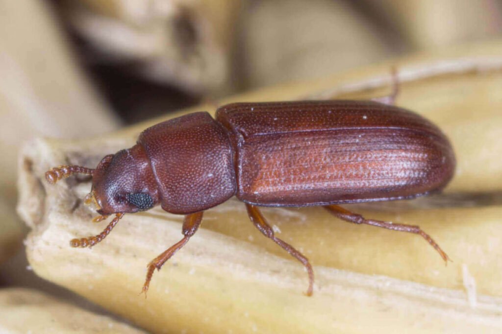 Grain beetles are small pests that infest cereals, grains, and other dry food products. They reproduce quickly in pantries and storage areas, contaminating stored foods.