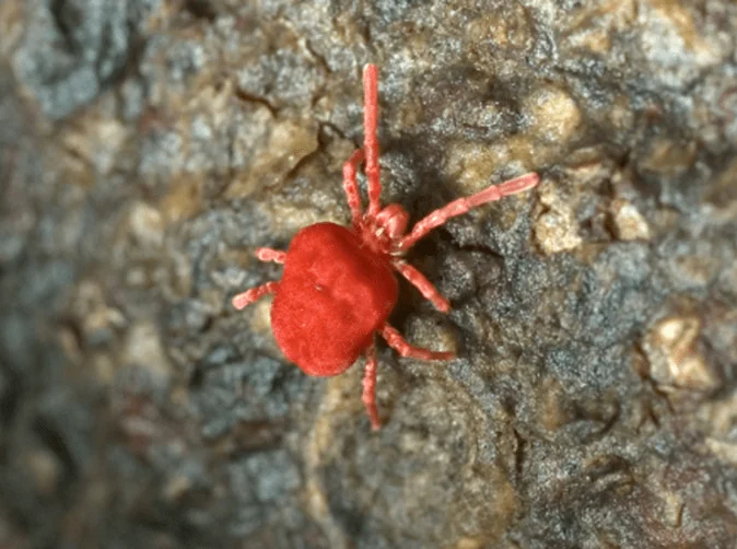 Clover mites are easily identified by their bright red coloring. Unlike blood-feeding pests, they feed on the juices of grasses and plants, often gathering in large numbers near lawns and gardens.